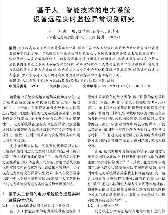 基于人工智能技术的电力系统设备远程实时监控异常识别研究