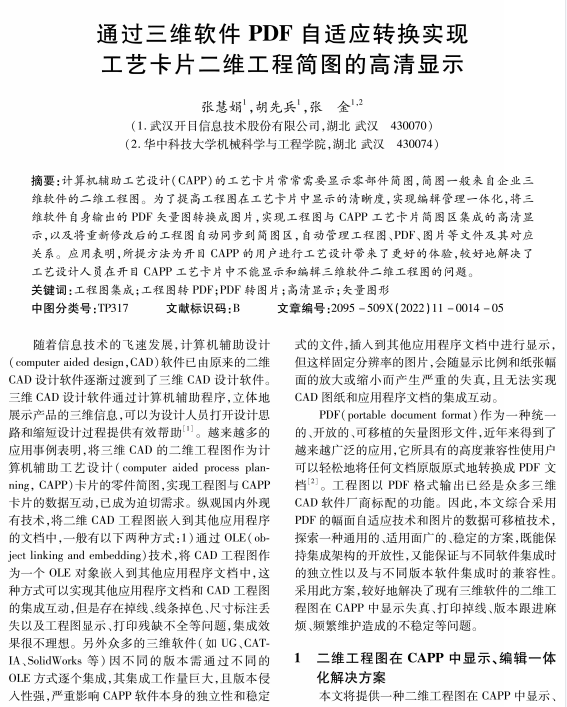 通过三维软件PDF自适应转换实现工艺卡片二维工程简图的高清显示