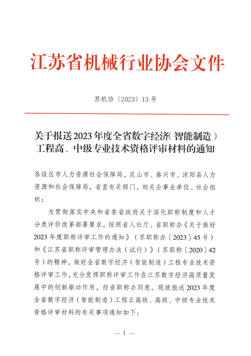 关于报送2023年度全省机械工程高、中级专业技术资格评审材料的通知