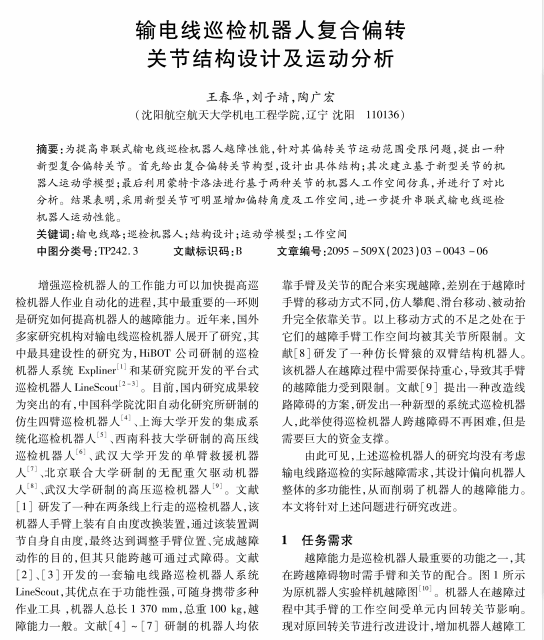 输电线巡检机器人复合偏转关节结构设计及运动分析
