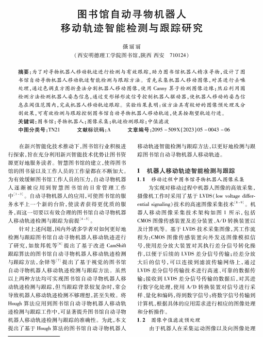图书馆自动寻物机器人移动轨迹智能检测与跟踪研究