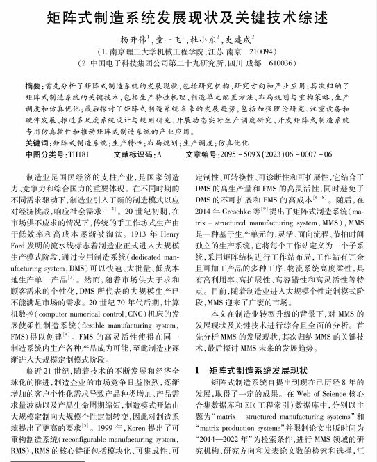 矩阵式制造系统发展现状及关键技术综述