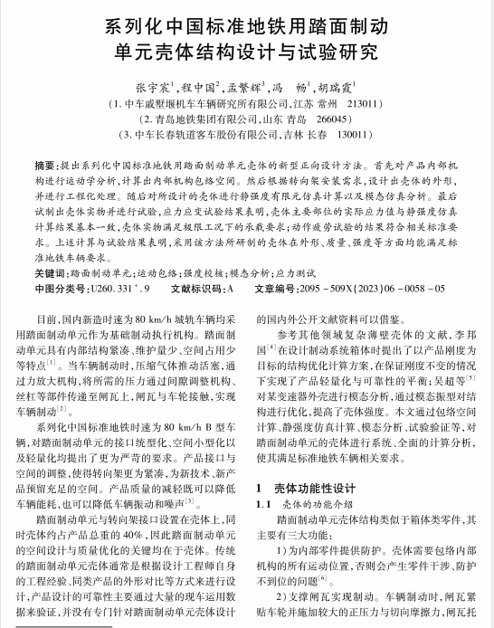系列化中国标准地铁用踏面制动单元壳体结构设计与试验研究