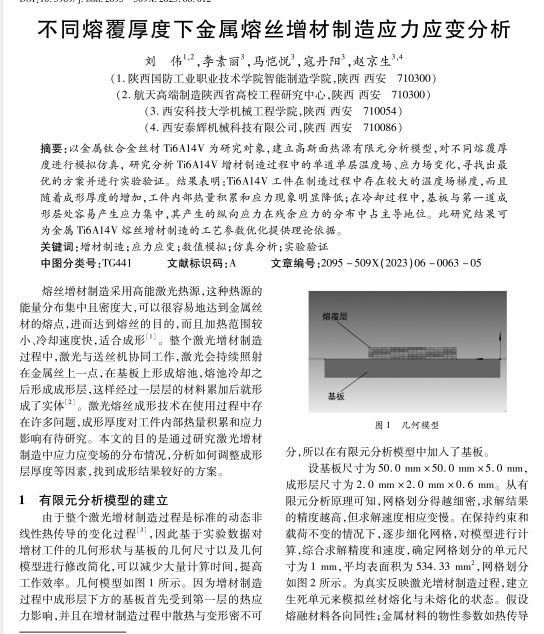 不同熔覆厚度下金属熔丝增材制造应力应变分析