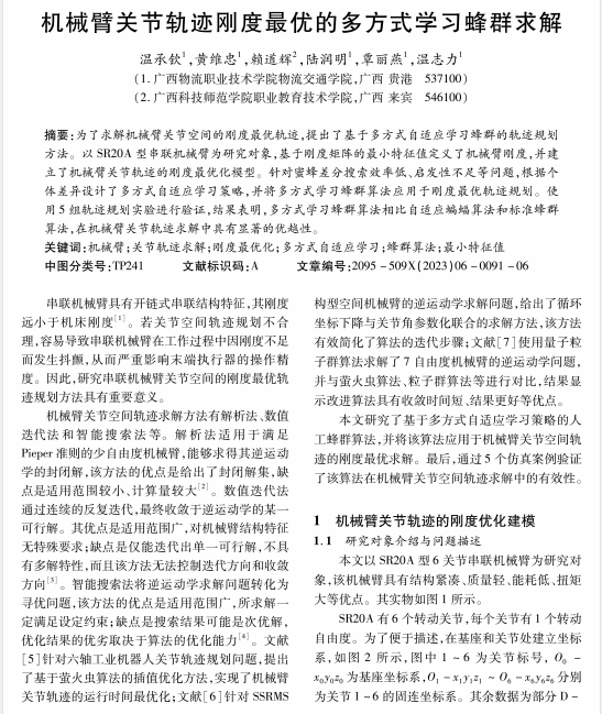 机械臂关节轨迹刚度最优的多方式学习蜂群求解