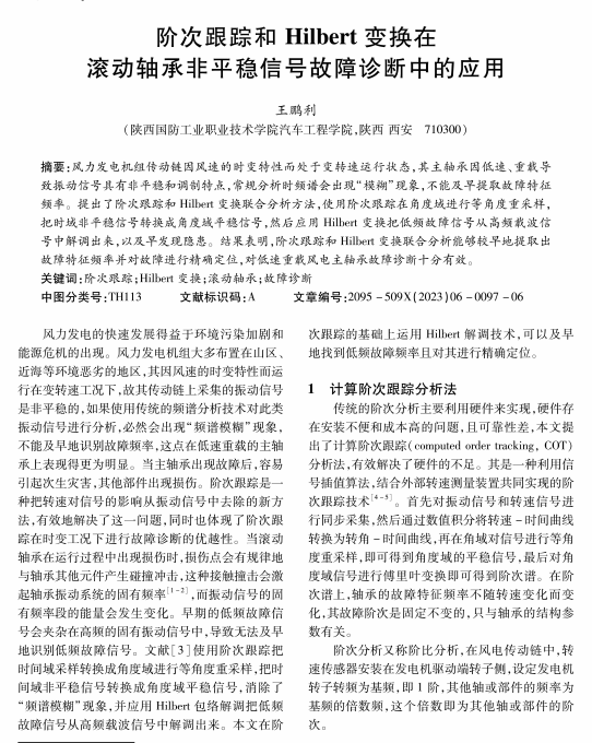 阶次跟踪和Hilbert变换在滚动轴承非平稳信号故障诊断中的应用