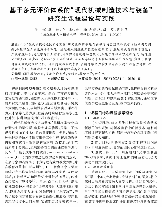 基于多元评价体系的“现代机械制造技术与装备”研究生课程建设与实践