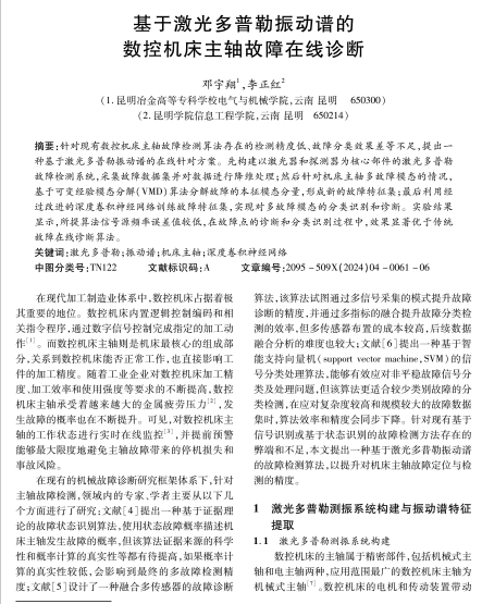 基于激光多普勒振动谱的数控机床主轴故障在线诊断