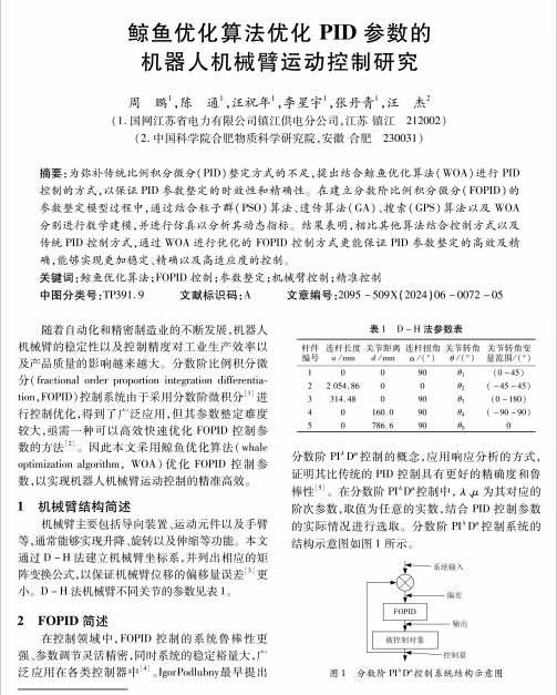鲸鱼优化算法优化 PID 参数的机器人机械臂运动控制研究