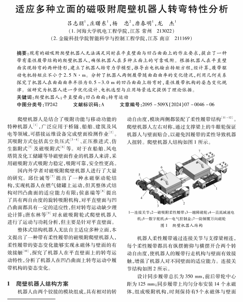 适应多种立面的磁吸附爬壁机器人转弯特性分析