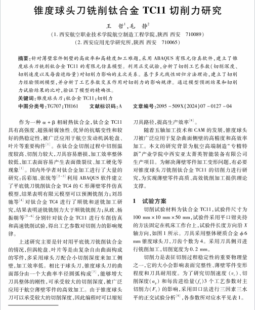 锥度球头刀铣削钛合金TC11切削力研究