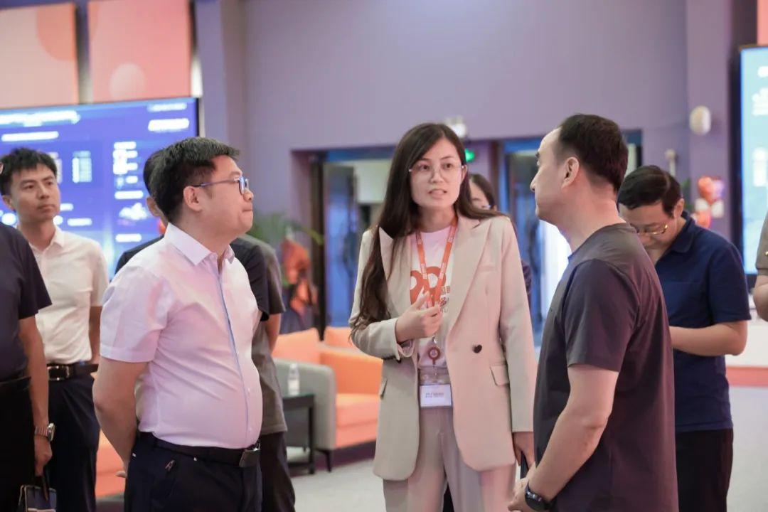 来访一行首先参观了国联股份一层数字展厅,深入了解了国联股份及肥多多的运营模式、业务范围以及国联云的技术实力和应用场景。