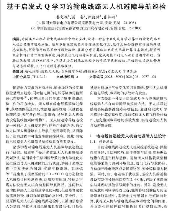 基于启发式Q学习的输电线路无人机避障导航巡检