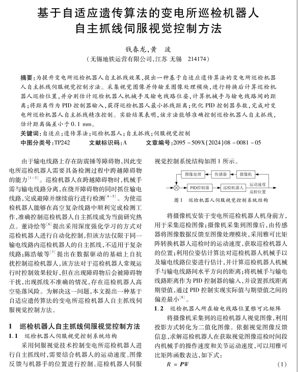 基于自适应遗传算法的变电所巡检机器人 自主抓线伺服视觉控制方法