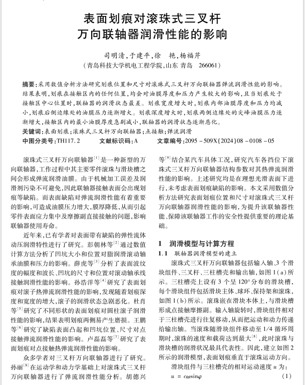 表面划痕对滚珠式三叉杆 表面划痕对滚珠式三叉杆