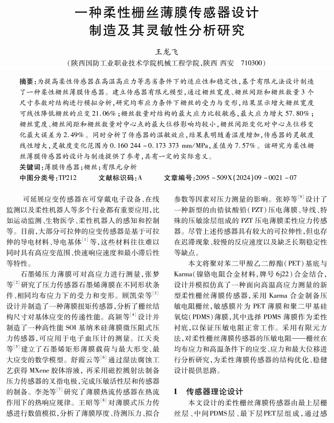 一种柔性栅丝薄膜传感器设计 制造及其灵敏性分析研究