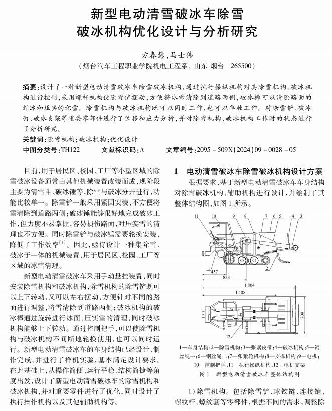 新型电动清雪破冰车除雪 破冰机构优化设计与分析研究