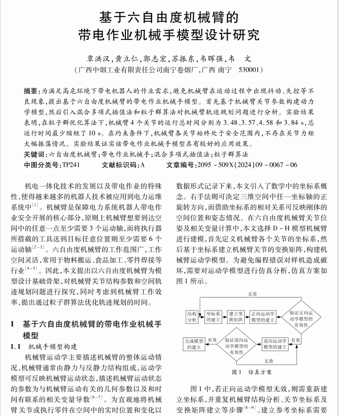 基于六自由度机械臂的带电作业机械手模型设计研究