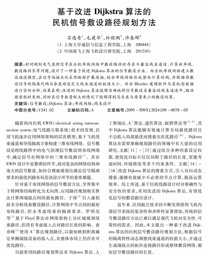 基于改进Dijkstra算法的民机信号敷设路径规划方法