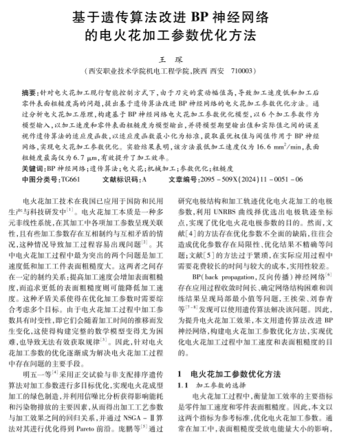 基于遗传算法改进BP神经网络的电火花加工参数优化方法