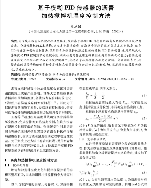 基于模糊PID传感器的沥青加热搅拌机温度控制方法