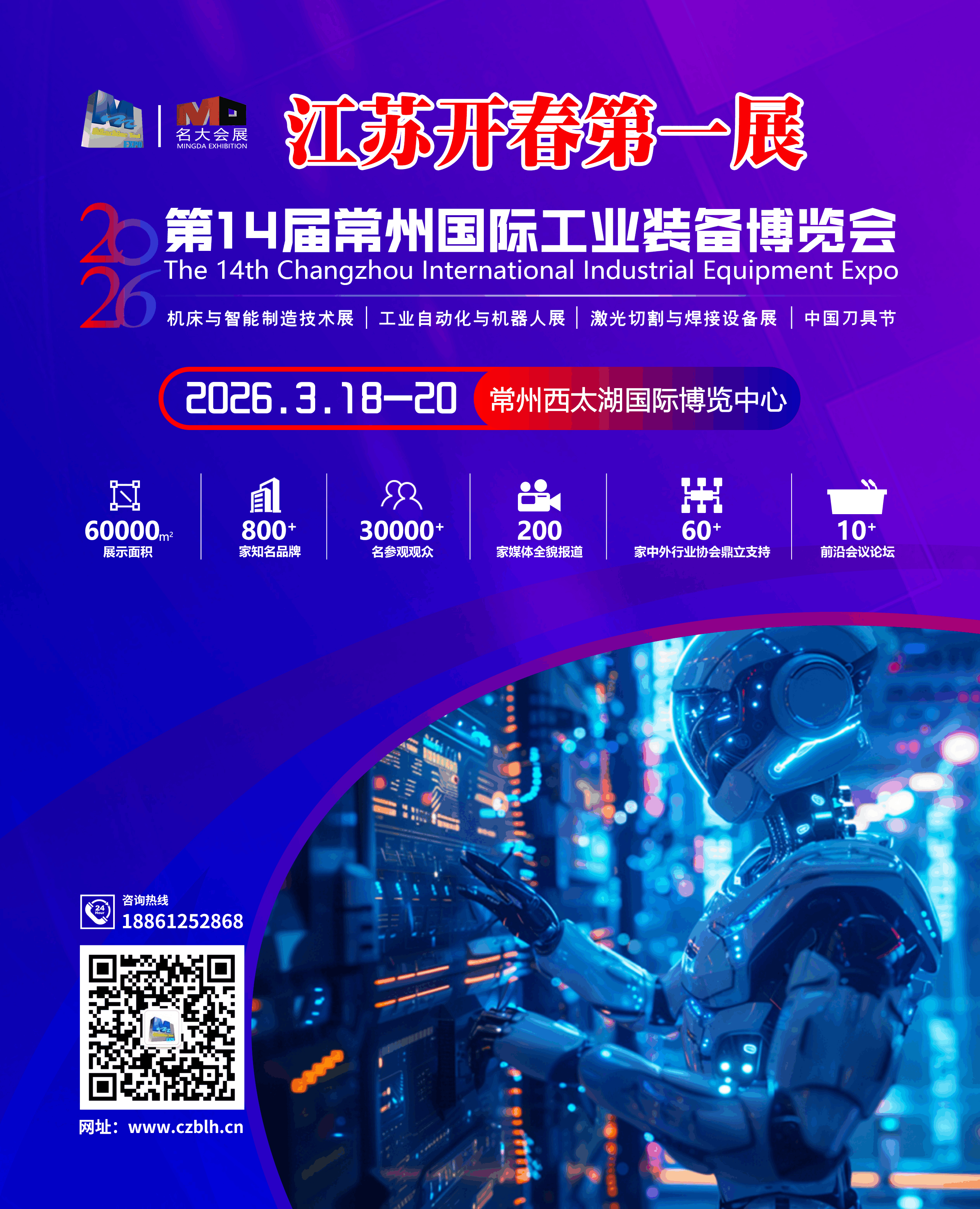 2026第14届常州国际工业装备博览会将于2026年3月18-20日在常州西太湖国际博览中心盛大举行!目前,各项筹备工作正稳步推进。
