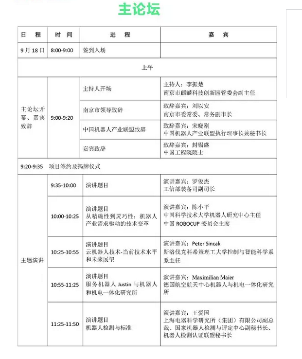 国际服务机器人产业高峰论坛由中国服务机器人应用及推广联盟,并由中国机械工业国际合作咨询服务中心、联合麒麟科技创新园管委会及南京市有关政府部门主办,旨在成为推动国内服务机器人产业发展的国际行业论坛,是我国机器人领域规模最大,规格最高,聚集行业领袖最多的专业峰会论坛。