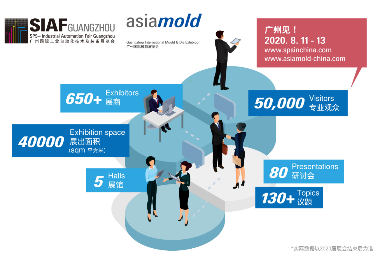 2020年8月11至13日,SIAF广州国际工业自动化技术及装备展览会及同期Asiamold广州国际模具展览会将在广州中国进出口商品交易会展馆盛大举行。作为德国纽伦堡SPS智能生产解决方案展览会的姊妹展,SIAF是华南地区智能工业自动化解决方案的重要平台,而Asiamold则涵盖了前沿的模具制造、3D打印、激光制造、压铸、轴承及金属加工技术。两展同属智能制造领域,参展企业合计超过650家,展馆的规模达40,000平方米,预计吸引超过50,000名专业观众前来参观。展会现场将呈现超过130个议题, 分享工业自动化、模具制造和3D打印行业最新资讯,聚焦探讨技术成果。